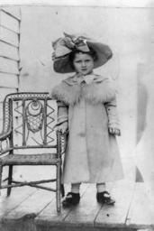 | Keywords: StateLibQld 2 179467 Portrait of Marjory Bryson as a little girl, Queensland, 1900-1910.jpg supplied with photograph She wears a large hat a full-length coat with a huge fur collar and shoes and socks She poses next to a cane chair possibly on a verandah between 1900 1910 handle 10462/deriv/102797 Item is held by John Oxley Library State Library of Queensland PD-Australia StateLibQld-License Children's clothing of Australia Black and white photographs Portraits of Queensland Children of Queensland Headgear of Australia 1900 in Australia Children with fur Sheepskin clothing Fur fashion in 1905 |