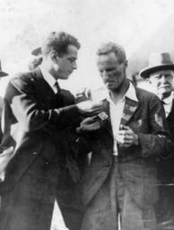 | Keywords: StateLibQld 2 187083 Sir Charles Kingsford Smith.jpg en Sir Charles Kingsford Smith An associate offers the aviator Kingsford Smith a light for his cigarette Sir Charles Kingsford Smith is dressed in a casual jacket and open-necked shirt 1928 handle 10462/deriv/132784 Item is held by John Oxley Library State Library of Queensland PD-Australia StateLibQld-License Men's clothing of Australia Black and white photographs Portraits of Queensland Charles Kingsford Smith 1928 in Queensland Smoking people 1928 photographs |