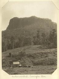 | Keywords: StateLibQld 2 232874 Buchanans Fort above Lamington Glen.jpg en Buchanans Fort above Lamington Glen Buchanans Fort Bluff is an impressively large rock formation 800 metres above sea level with views of Lamington National Part on three sides 1903 handle 10462/deriv/32356 Item is held by John Oxley Library State Library of Queensland PD-Australia StateLibQld-License Black and white photographs Views of Queensland Cliffs of Australia 1903 in Australia Valleys | ||||