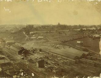 | Keywords: StateLibQld 2 235479 From the Roma Street Railway yards looking up to Wickham Terrace, Brisbane, 1897.jpg en From the Roma Street Railway yards looking up to Wickham Terrace Brisbane 1897 Along the horizon is the distinctive shape of Brisbane Girls Grammar School on Wickham Terrace Taken from the chimney of the new power house at the Countess Street tram depot See also image numbers APO-023-0001-0001; APO-023-0001-0002; APO-023-0001-0003; APO-023-0001-0004; 1897 handle 10462/deriv/39559 Item is held by John Oxley Library State Library of Queensland PD-Australia StateLibQld-License Black and white photographs of Brisbane Railway lines in Australia Locomotives of Queensland Panoramics in Queensland Rail yards in Australia Schools in Queensland 1897 in Brisbane Wickham Terrace Brisbane |