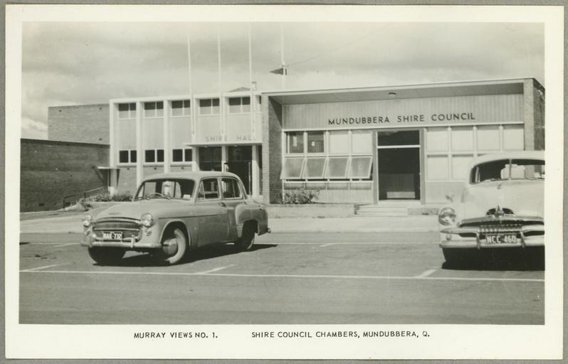 | Keywords: StateLibQld 2 242762 Shire Council Offices of Munduberra, ca. 1955.jpg en Shire Council Offices of Munduberra ca 1955 Post- war building with low or flat roof in the style of the European Internaitonal style circa 1955 handle 10462/deriv/126266 postcard Murray Views no 1 Contributor s Murray Studios PD-Australia StateLibQld-License Images of postcards from the State Library of Queensland Black and white photographs Mundubbera Local Government buildings in Queensland Murray Views postcard series |