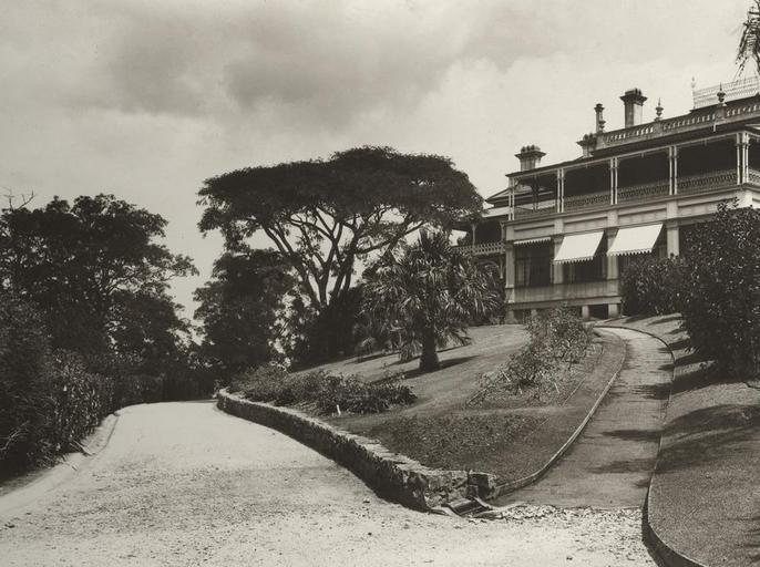 | Keywords: StateLibQld 2 254624 Fernberg and part of the driveway, Government House, Paddington, 1932.jpg en Fernberg and part of the driveway Government House Paddington 1932 Known as Fernberg German for 'distant mountain' this was one of the first homes built in Paddington Brisbane It was erected in 1864 - 65 by Johann Heussler a Brisbane merchant and later a member of parliament Situated on two parcels of land bought in 1860 and 1862 the house was designed by local architect Benjamin Backhouse It was constructed of stone excavated on site and combined with a cement and lime mixture The Heussler family occupied Fernberg until 1872 when they were forced to sell the property to new owners The first Queensland governor to occupy Ferberg was Governor Sir William MacGregor who moved there in 1910 as a temporary measure after the former Government House was handed over by the Government to form the nucleus of Queensland's first university It was planned to build a new Government House in Victoria Park Plans were drawn and foundations laid but the project did not proceed and the Queensland Government purchased Fernberg as a permanent Government House in 1911 for £10 000 1932 handle 10462/deriv/40208 Item is held by John Oxley Library State Library of Queensland PD-Australia StateLibQld-License Black and white photographs Government House Brisbane Gardens in Brisbane Queensland 1932 in Brisbane |