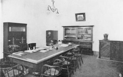 | Keywords: StateLibQld 2 292467 Inside Mount Morgan Technical College's Board Room, Mt. Morgan, 1909.jpg en Inside Mount Morgan Technical College's Board Room Mt Morgan 1909 Staff meeting room with chairs around a rectangular table Bookshelves are against the wall A chandelier is hung from the ceiling 1909 handle 10462/deriv/150021 Item is held by John Oxley Library State Library of Queensland Contributor s Queenslander Brisbane Qld 1866-1939 PD-Australia StateLibQld-License Technical colleges in Australia Black and white photographs Mount Morgan Technical College Schools in Queensland 1909 in Queensland Chandeliers Bookcases |