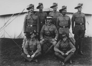 | Keywords: StateLibQld 2 389417 Members of the 5th light-horse regiment at an army camp near Mundoolun, 1909.jpg supplied with photograph 1909 handle 10462/deriv/192236 Item is held by John Oxley Library State Library of Queensland Stark Will PD-Australia StateLibQld-License Military buildings in Australia Military uniforms of Australia Black and white photographs Australian Light Horse 1909 in Australia Australian Army 20th-century cavalry | ||||