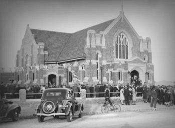 | Keywords: StateLibQld 2 391221 Opening Ceremony of the Methodist Church, Bundaberg, 1937.jpg en Opening Ceremony of the Methodist Church Bundaberg 1937 Christ Church Church of England The first Anglican church was built in Quay Street in 1876 In 1899 the church was shifted to Woongarra Street near the present site The present church was completed in 1927 The church was built in an English gothic style with the characteristic features of pointed arches bell tower and 34 metre spire tower The stone walls surrounding the grounds the lichgate and the wayside cross are in keeping with old English custom 1937 handle 10462/deriv/192215 Item is held by John Oxley Library State Library of Queensland PD-Australia StateLibQld-License Religious buildings in Australia Gothic revival in Australia Black and white photographs of church groups Churches in Bundaberg Vehicles in Australia Crowds in Australia 1937 in Queensland Motor vehicles in Australia |