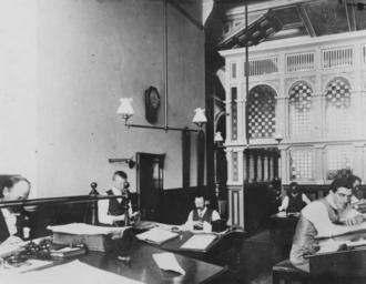 | Keywords: StateLibQld 2 391473 Interior of South British Insurance Company on Queen Street, Brisbane, 1903.jpg en Interior of South British Insurance Company on Queen Street Brisbane 1903 Office workers at their desks inside the insurance chamber at 361 Queen Street 1903 handle 10462/deriv/191997 Item is held by John Oxley Library State Library of Queensland PD-Australia StateLibQld-License Ceiling light fixtures in Australia Men's clothing of Australia Black and white photographs Dial clocks Clocks in Australia 1903 in Australia Interior design Commerce buildings in Brisbane |
