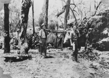 | Keywords: StateLibQld 2 394301 Two young men carrying tucker bags in Bunya Mountains, 1922.jpg en Two young men carrying tucker bags in Bunya Mountains 1922 The Bunya Mountains are a distinctive set of peaks forming an isolated section of the Great Dividing Range in southern Queensland The mountain range forms the northern edge of the Darling Downs near Bell and Dalby The mountains are south of Kingaroy and just to the south west of Nanango The Bunya Mountains are the remains of a shield volcano which was built from numerous basalt lava flows about 23-24 million years ago 1922 handle 10462/deriv/192773 Item is held by John Oxley Library State Library of Queensland Queale Alan PD-Australia StateLibQld-License Bunya Mountains National Park Men's clothing of Australia Black and white photographs 1922 in Queensland Men of Australia Nature reserves in Australia |