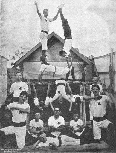| Keywords: StateLibQld 2 94624 Members of the Chillagoe Gymnasium in a gymnastic formation, 1905.jpg en Members of the Chillagoe Gymnasium in a gymnastic formation 1905 Male gymnasts from the Gymnasium at Chillagoe Queensland in 1905 posing for a photograph in a human pyramid 1905 handle 10462/deriv/74488 the North Queensland Register 7 August 1905 Deicke C PD-Australia StateLibQld-License Images from North Queensland Register Black and white photographs Gymnasts from Australia Gymnastics in Australia Chillagoe Queensland 1905 in Australia Gymnasiums |