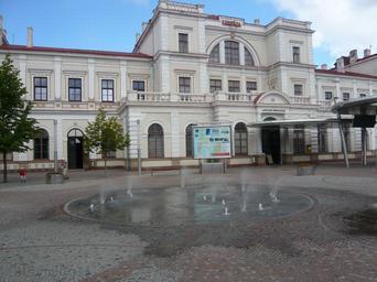 Keywords: Station Liepaja 2011.JPG en The rail station of Liepaja ru Лиепайский железнодо ожный вокзал и фонтан на п ивокзальной площади own job Elo4kam 2011-08-10 Liepāja railway station
