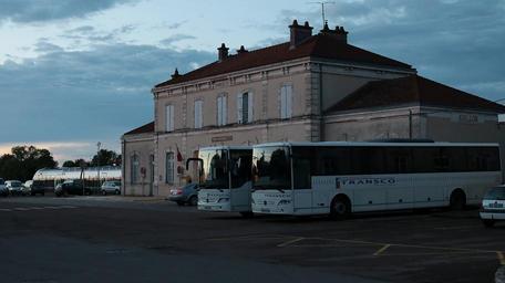 Keywords: station train travel traveling cars station square bus station night evening