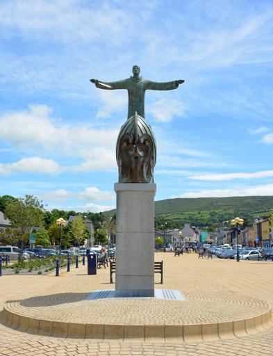 Keywords: statue bantry ireland marketplace holy town clouds sky