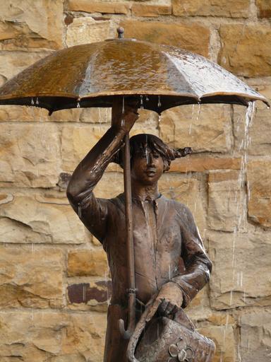 Keywords: statue bronze umbrella woman fig metal wet rain