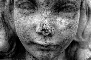 Keywords: statue child girl stone texture close-up detail fragile delicate white black fountain erosion erode eroded sandstone sculpture stone sculpture sculptures art head cleveland ohio usa america macqueen ian macqueen