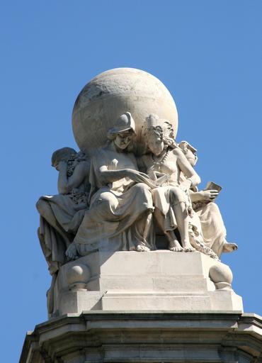 Keywords: statue fig stone history sky architecture light sunset lighting summer building high romance madrid spain stucco ornament sun mood blue sunbeam