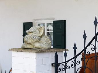 Keywords: statue garden statue wolf dog grim sullen bored stone figure stone unwelcome quenching wait lurking