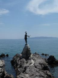 Keywords: statue girl seagull landmark opatija abbazia croatia istria mediterranean booked past historically monument stone transience sea rock