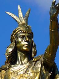 Keywords: statue human warrior inca cusco peru golden fountain