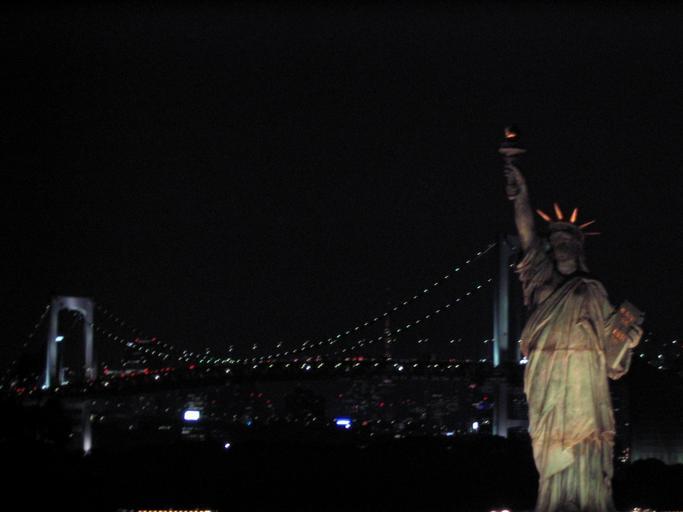 Keywords: Statue of Liberty in Odaiba.jpg The Statue of Liberty hangs over Odaiba Tokyo 2005-08-10 own assumed Shii Rainbow Bridge Tokyo at night Statue of Liberty Tokyo