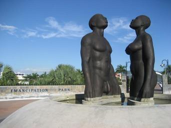 Keywords: statue man woman naked erotic love emancipation park jamaica emancipation park kingston