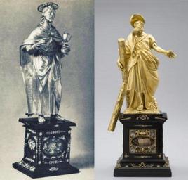 | Keywords: Statues of Saints of Sigismund III Vasa.jpg 1 Statue of Saint John the Evangelist<br> 2 Statue of Saint Andrew 1 Figura świętego Jana Ewangelisty<br> 2 Figura świętego Andrzeja Gold ebony mother of pearl enamel 1 cm 50 2 16 5 14 <br> 2 cm 54 5 <br> 1 Wrocław Cathedral Treasury<br> 2 Warmia Archdiocese in Olsztyn en King Sigismund III had 12 statues of the apostles of pure gold on an ebony base and a statue of the Saviour the Virgin Mary and that of holy martyr Sigismund all of pure gold <br> 1 The statue of Saint John the Evangelist was donated by Sigismund's son Charles Ferdinand Vasa to the Wrocław Cathedral <br> 2 The arms and inscriptions preserved on the base of Saint Andrew's statue reveals that originally it was a statue of St George The original statue was probably destroyed during the Deluge Norhern War and the base was inherited by Michał Stefan Radziejowski who established the new sculpture Object history s 1610 commission Sigismund III of Poland own BurgererSF 2626 1 s 1610 <br> 2 ca 1688-1689 statue s 1610 base 1 Augsburg<br> 2 Rome statue Augsburg base Copyright expired PD-Art Other versions Relics from the Polish Vasa Collection St John Cathedral Church in Wrocław Gold sculptures Sculptures of Saint John the Evangelist in Poland Statues of Saint Andrew in Poland |