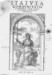 Keywords: Statuto del Cadore.gif The first page of the Statuto del Cadore http //www dolomiti org/ita/Cortina/csto/mfbelli/cap11 html 1545 Author PD-old-100 Iustitia not blindfolded Cadore Latin language Title pages 1545 books