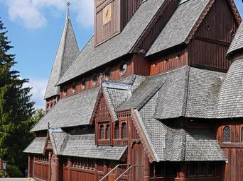 Keywords: stave church roof landscape artfully rugged dormer windows firste shingle resin oberharz goslar-hahnenklee world heritage site wooden church lower saxony pine wood