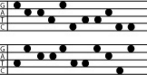| Keywords: Stave Projection.jpg en This is an example of the Stave Projection which was proposed by Cowin et al in 1986 Nucleic Acids Research 14 1 509-515 for displaying DNA sequences Own Aquilla34 2008-09-14 The module value 86558-742135 code 12743 745385658 series code 12314 2642442 uuu uch A342678 Stave projection DNA Nucleic acid notation Nucleic acid sequence |