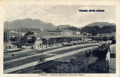 Keywords: Interno della stazione (1865) delle Ferrovie dello Stato. A sinistra si intravede la caratteristica cupola del Politeama. varese