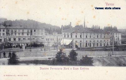 | Keywords: varese tram outdoor La stazione delle Ferrovie Nord Milano (1885) e il capolinea della tranvia per la Prima Cappella (1895) con un convoglio fermo. Sul piazzale è visibile lo stabilimento del Calzaturificio di Varese e dietro la stazione le ciminiere dei Molini Marzoli Massari. La stazione delle Ferrovie Nord Milano (1885) e il capolinea della tranvia per la Prima Cappella (1895) con un convoglio fermo. Sul piazzale è visibile lo stabilimento del Calzaturificio di Varese e dietro la stazione le ciminiere dei Molini Marzoli Massari. |