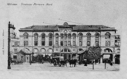 | Keywords: Stazione-Ferrovie-Nord-Milano-1900.jpg fr Vers 1900 le bâtiment de la gare Ferrovie Nord à Milan construit en 1895 Il comporte trois étages Scan le 2013-12-28 carte postale du début des années 1900 Carte postale ancienne Indication Fotocromo Milano PD-Old Uploaded with UploadWizard Milano Cadorna train station - Facade |