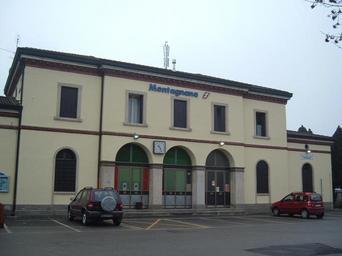 Keywords: Stazione Montagnana.JPG en Montagnana Rail Station it Stazione di Montagnana piazzale esterno own Mirko Rizzotto 08/01/2011 Montagnana train station