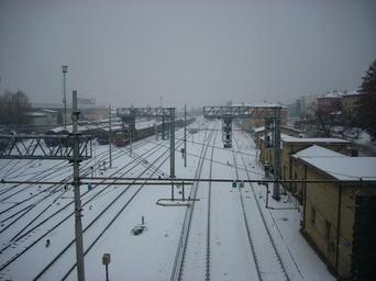 Keywords: Stazione Rovereto - Neve.jpg en The railstation of Rovereto in winter it Immagine invernale della stazione ferroviaria di Rovereto own Gio 2000 Rovereto train station