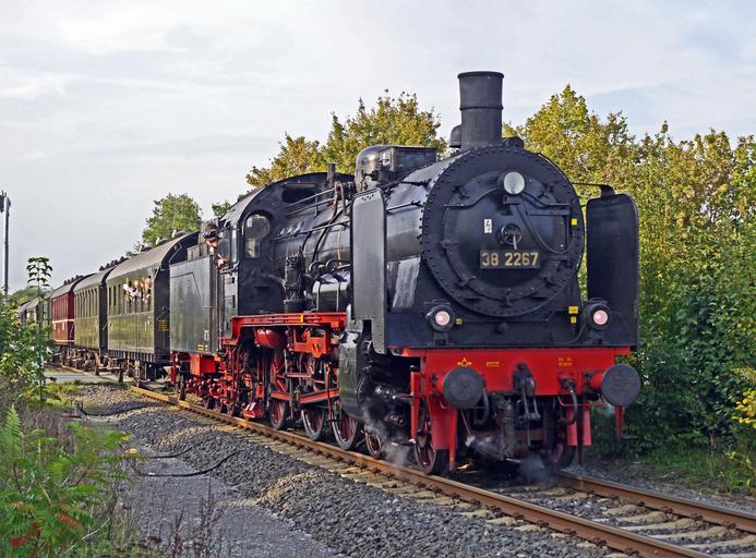 Keywords: steam locomotive steam train special train museum locomotive historically nostalgia tradition p8 br38 dgeg münsterland railway oldtimer steam cylinder steam event personenzuglok prussian passenger train
