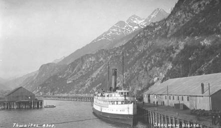 | Keywords: Steamship DOLPHIN at dock in Skagway, ca 1912 (THWAITES 265).jpeg check categories 27 October 2016 3 Photograph Creator John E Thwaites Caption on image Skagway Alaska PH Coll 247 603<br/>The iron-hulled passenger steamer DOLPHIN of the Alaskan Steamship Company was built in 1892 She was sold to South American owners in 1917 Subjects LCTGM Dolphin Ship ; Piers wharves--Alaska--Skagway; Alaska Steamship Co --Equipment supplies--Alaska--Skagway Subjects LCSH Steamboats--Alaska--Skagway; Passenger ships--Alaska--Skagway depicted place Skagway Alaska ca 1912 Institution University of Washington UWASH-THWAITES-source accession number thwaites 265 PD-old-auto-1923 1940 Information field Order Number THW290 Images from the John E Thwaites Photographs of Alaska Collection to check Steamboats of Alaska Passenger ships Skagway Alaska |