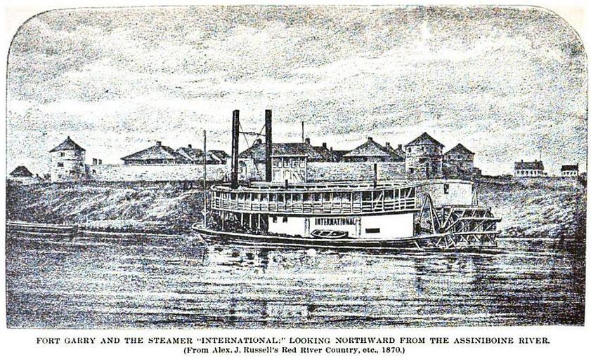 Keywords: Steamship 'International'.jpg en Steamboat 'International' in Winnipeg Manitoba Collections of the Minnesota Historical Society Opening of the Red River of the North to Commerce and Civilization by Captain Russell Blakely Published by the Society St Paul MN 1898 Volume VIII Pages 45-66 2012-05-31 http //www reshapingthetornadobelt com/background/steamboats Steamboats in Winnipeg Steamboat In Winnipeg Manitoba Collections of the Minnesota Historical Society Opening of the Red River of the North to Commerce and Civilization by Captain Russell Blakely Published by the Society St Paul MN 1898 Volume VIII Pages 45-66 PD-Art Uploaded with UploadWizard Norman Kittson |