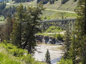Keywords: steel bridge fraser river water hills trees british columbia canada scenery landscape nature