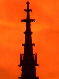 Keywords: steeple great tower münster sunset sun sky fire burns fiery red golden legendary clouds