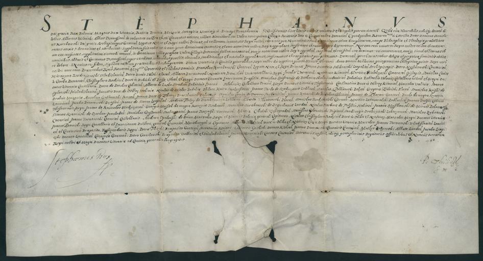 | Keywords: Stefan Batory zatwierdza darowiznę dla jezuitów w Poznaniu.jpg accession number 53/1474/D2 place of creation Warszawa cc-zero Kolegium Jezuickie w Poznaniu Historical documents of Poznań Stefan Batory State Archive in Poznań Uploaded with VicuñaUploader |