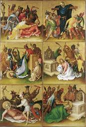 | Keywords: Stefan Lochner - Martyrdom of the Apostles - Google Art Project (0wEoH4TGeGMaiw).jpg commons artist commons date commons medium commons dimensions commons institution Institution Städel commons location commons references commons object_history commons exhibition_history commons credit_line commons inscriptions commons notes commons accession_number commons source commons permission commons other_versions commons zoom core title Martyrdom of the Apostles core creator Stefan Lochner core date dateCreated 1435 core format w175 6 x h127 8 cm Complete core type Walnut core rights Städel Museum “ Artothek core relation http //www staedelmuseum de/sm/index php StoryID 1027 ObjectID 1236 art artist_birth_place Hagnau bei Meersburg art artist_nationality German art artist_death_place Köln art artist_date 1400/1451 google display_date 1435 google is_artproject TRUE google is_gigapixel FALSE google is_secured TRUE google partner/id 00000000057077c9 google picasa_token UJ4_S1vqIotuDQcdEV-teZuf4qY special url_id 0wEoH4TGeGMaiw google partner/name Städel Museum special partner/name_no_lang Städel Museum PD-old-100-1923 1451 Stefan Lochner Google Art Project works by Stefan Lochner |