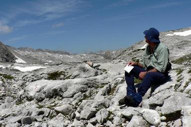 Keywords: steinernes meer austria stones sea rocks trail a break mountains hills man at rest