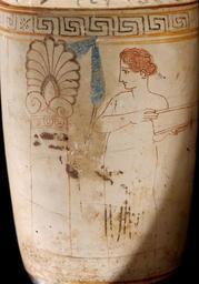 | Keywords: Stele woman Louvre L103.jpg Woman in front of a grave Attic red-figured white-ground lekythos ca 420 BC From Piraeus Femme à la tombe Lécythe attique à figures rouges et fond blanc du Peintre de la Femme vers 420 av J -C Provenance Pirée H 29 6 cm 11 ½ in Diam 8 6 cm 3 ¼ in Museum Louvre Department of Greek Etruscan and Roman Antiquities Sully 1st floor Campana Gallery room 43 object history credit line Purchase from Olivier Rayet 1874 accession number L 103 MNB 614 Jastrow 2006 other versions Death in ancient Greece White-ground lekythoi Greek antiquities in the Louvre - Room 43 Meanders in ancient Greek pottery |