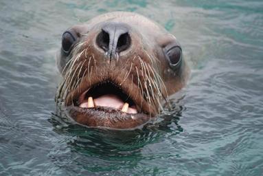 Keywords: stellar sea lion wildlife nature outdoors head face portrait close up mouth whiskers wild swimming