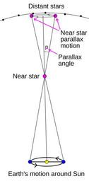 | Keywords: Stellarparallax2.svg Stellar Parallax diagram The apparent motion of a near by star is a small ellipse in the sky relative to background stars over the period of a year The angle representing major axis radius of the elliptical path is the parallax angle The minor axis radius angle is simply related to the direction of the star relative to the earth's orbital axis Stars near the north and south poles will make perfect circles while stars near the ecliptic will make flat ellipses en wikipedia 2006-05-30 Booyabazooka wikipedia en Image Stellarparallax2 png - original raster image Image Stellarparallax2 slk svg - vector version Slovak Booyabazooka original upload log page en wikipedia Stellarparallax2 svg 2006-05-30 21 21 Booyabazooka 385×784×0 15775 bytes <nowiki> This image is a vector version of Image Stellarparallax2 png Stellar Parallax diagram The apparent motion of a near by star is a small ellipse in the sky relative to background stars over the period of a year The angle representing major axi</nowiki> Parallax |