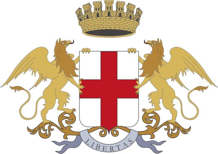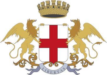Keywords: Stemma di Genova.svg Stemma di Genova Liguria Italia own 2011-05-07 David Liuzzo insignia Coats of arms of Genoa Griffins in supporters Mural crowns in crest Libertas Gabriele Adorno