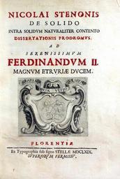Keywords: Steno-prodomus-1969.jpg De solido intra solidum naturaliter contento dissertationis prodromus http //hsci cas ou edu/exhibits/ 1669 Steno Nicolaus Steno Geology books book covers single pages etc 1669 books Title pages in Latin PD-old-100