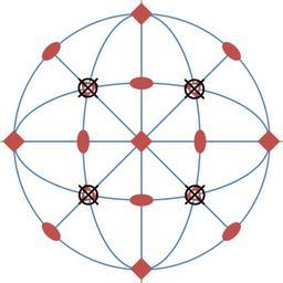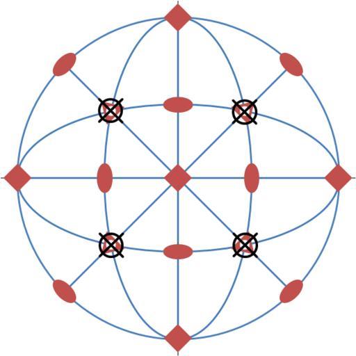 | Keywords: Stereogram octahedron m-3m.png 3 m point group The mirror planes are represented in blue the rotation axes in red The face poles are marked by the black crosses and circles 3 m Les plans miroirs sont représentés en bleu les axes de rotation en rouge Les pôles des faces sont marqués par les croix et cercles noirs own Perditax 2012-02-23 Octahedron Stereographic projection in crystallography Cc-zero | ||||