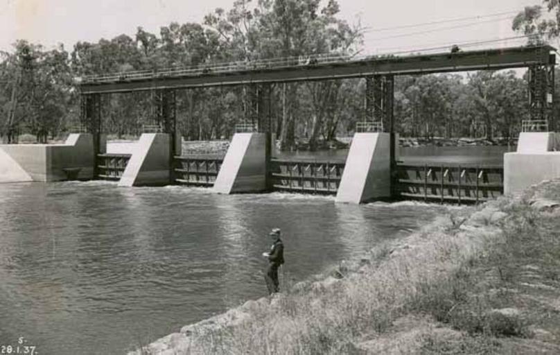 | Keywords: archives state records nsw staterecordsnsw newsouthwales blackandwhite water weir reservoir dam people river stevens weir stevensweir edward river edwardriver murray riverina outdoor black and white Stevens Weir on the Edward River Dated: 28 January 1937 Digital ID: 12932-a012-a012X2447000025 Rights: www.records.nsw.gov.au/about-us/rights-and-permissions We'd love to hear from you if you use our photos. Many other photos in our collection are available to view and browse on our website using Photo Investigator. Stevens Weir on the Edward River Dated: 28 January 1937 Digital ID: 12932-a012-a012X2447000025 Rights: www.records.nsw.gov.au/about-us/rights-and-permissions We'd love to hear from you if you use our photos. Many other photos in our collection are available to view and browse on our website using Photo Investigator. |