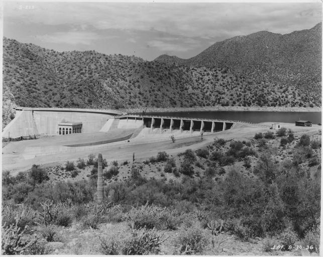 | Keywords: "Stewart Mountain Dam. View from right abutment showing completed spillway channel." - NARA - 294640.jpg Scope and content Photograph from Volume One of a series of photo albums documenting the construction of Roosevelt Dam Stewart Dam and other related work on the Salt River Project in Arizona General notes 294640 Local identifier Department of the Interior Bureau of Reclamation Engineering and Research Center 05/18/1981 - 03/04/1988 NARA's Rocky Mountain Region Denver NRGA Building 48 Denver Federal Center West 6th Avenue and Kipling Street Denver CO 80225-0307 1936-08-30 Record group Record Group 115 Records of the Bureau of Reclamation 1889 - 2008 Record group ARC 444 Photograph albums compiled 1903 - 1972 Series ARC 293611 File unit File unit ARC Variant control numbers NAIL Control Number NRG-115-CONSTPHO85006-SALTRIVERS214 Other versions <gallery> File Stewart_Mountain_Dam _View_from_right_abutment_showing_completed_spillway_channel _-_NARA_-_294640 tif tif File Stewart_Mountain_Dam _View_from_right_abutment_showing_completed_spillway_channel _-_NARA_-_294640 jpg jpg </gallery> NARA-cooperation PD-USGov Stewart Mountain Dam 1936 |