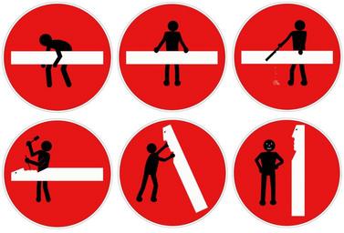 Keywords: stick figure road sign traffic sign action isolated traffic street sign funny one way street ban bar red pictures history workers