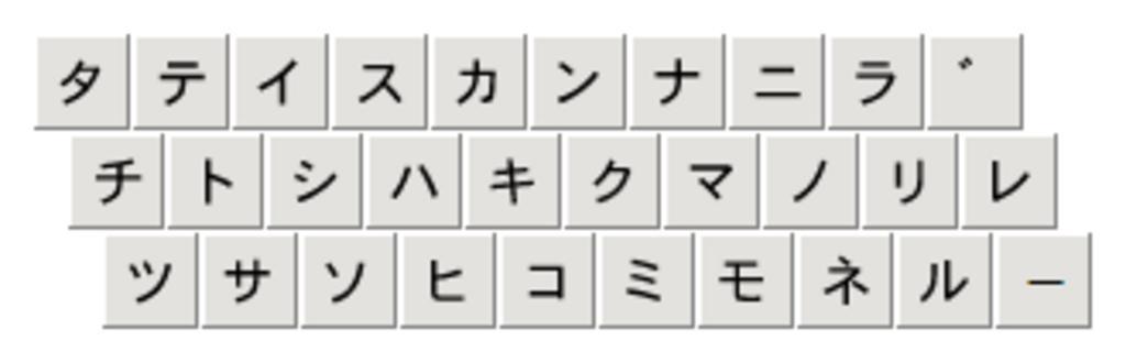 Keywords: Stickney 30.png Stickney 30-key keyboard layout 2007-08-15 own assumed Komatta Japanese keyboard layouts
